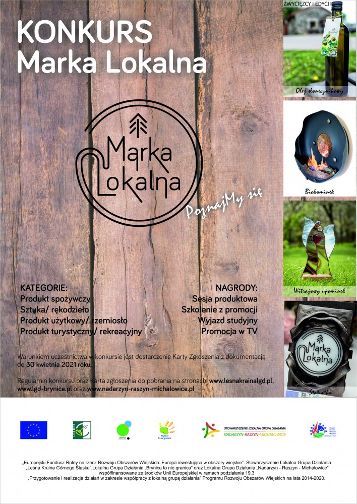 Celem konkursu jest wyłonienie grupy najlepszych produktów i usług z obszaru trzech Lokalnych Grup Działania: "Leśna Kraina Górnego Śląska”, "Brynica to nie granica” oraz Nadarzyn-Raszyn-Michałowice, które dzięki swoim walorom jakościowym i użytkowym będą kreatorem Marki Lokalnej.