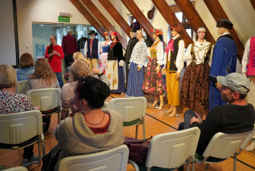 Pierwszego dnia Prezes Stowarzyszenia LGD „Leśna Kraina Górnego Śląska” Pan Piotr Leksy wraz z Wójtem Gminy Koszęcin Panem Zbigniewem Seniów uroczyście powitali gości na terenie Zespołu Pałacowo-Parkowego w Koszęcinie. Następnie Pani Ewa Kruszyna- specjalistka ds. dziedzictwa kulturowego przeprowadziła uczestników wizyty studyjnej przez bramę czasu i zapoznała ich z historią Zespołu Pieśni i Tańca „Śląsk” im. Stanisława Hadyny w Koszęcinie. Przymiarka tradycyjnych śląskich wianków była miłym zwieńczeniem lekcji historii i pozwoliła wszystkim Paniom poczuć się jak „śląskie dziołchy”.
