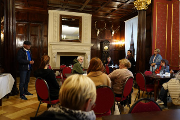 Później spacerem przypałacowym parkiem grupa udała się do Ośrodka Kultury i Edukacji Regionalnej u Pana Jana Myrcika, gdzie sam założyciel z pasją opowiadał o istocie śląskiej kultury, o jej korzeniach i konieczności pielęgnowania śląskich tradycji. Po kolacji był czas na relaks i tutaj główną atrakcją były rozgrywki w „Kręgielni Pod Pałacem”.