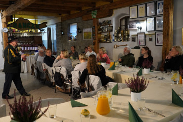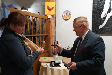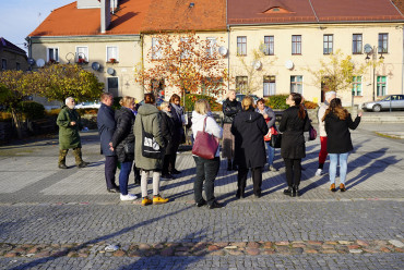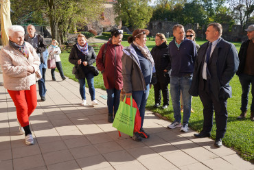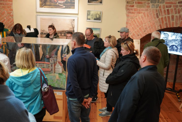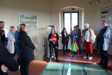 Po południu grupa udała się na Zamek w Toszku, gdzie do zwiedzających dołączył Burmistrz Miasta Toszek Pan Grzegorz Kupczyk. Wraz z nim grupa zwiedziła zamek, poznając jego legendy i historię sięgającą średniowiecza, a także Kościół pw. Św. Katarzyny Aleksandryjskiej i Albergę, czyli miejsce noclegowe dla pielgrzymów podążających szlakiem Św. Jakuba. Po spacerze i pamiątkowych zdjęciach na rynku goście zostali zaproszeni do Ratusza Urzędu Miasta Toszek, gdzie Pan Burmistrz wręczył obecnym upominki. Po powrocie na „Ranczo” uczestnicy wizyty studyjnej wysłuchali lekcji historii w sali rycersko-brackiej. Zwieńczeniem intensywnego dnia była uroczysta kolacja z Zarządem Stowarzyszenia LGD „Leśna Kraina Górnego Śląska”.