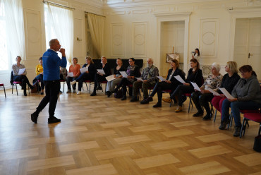 Trzeci dzień rozpoczął się ze śpiewem na ustach, czyli warsztatami wokalno-artystycznymi z Panem Piotrem Hankusem- mistrzem polskiej mowy, specjalistą ds. edukacyjnych prowadzącym między innymi warsztaty wokalne, taneczne oraz teatralne i co najważniejsze, wieloletnim solistą Zespołu Pieśni i Tańca „Śląsk”.