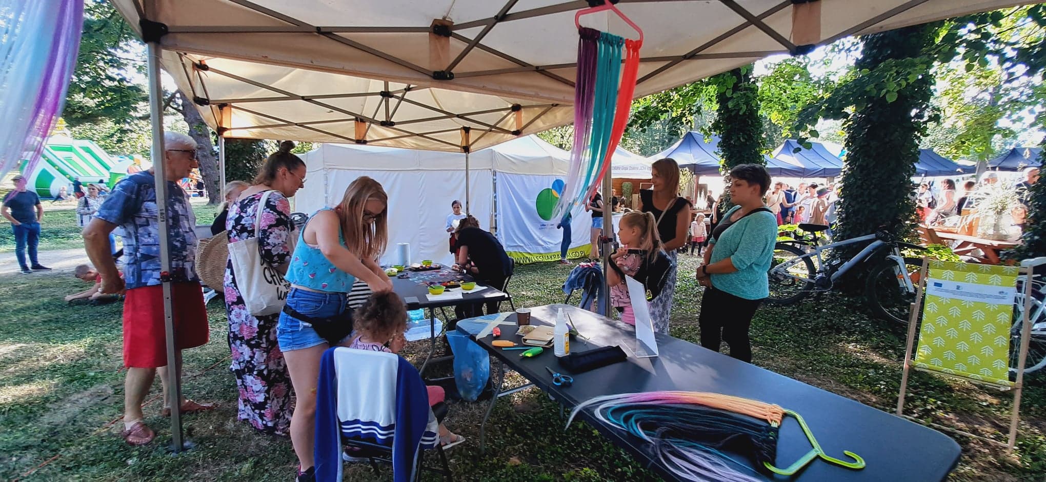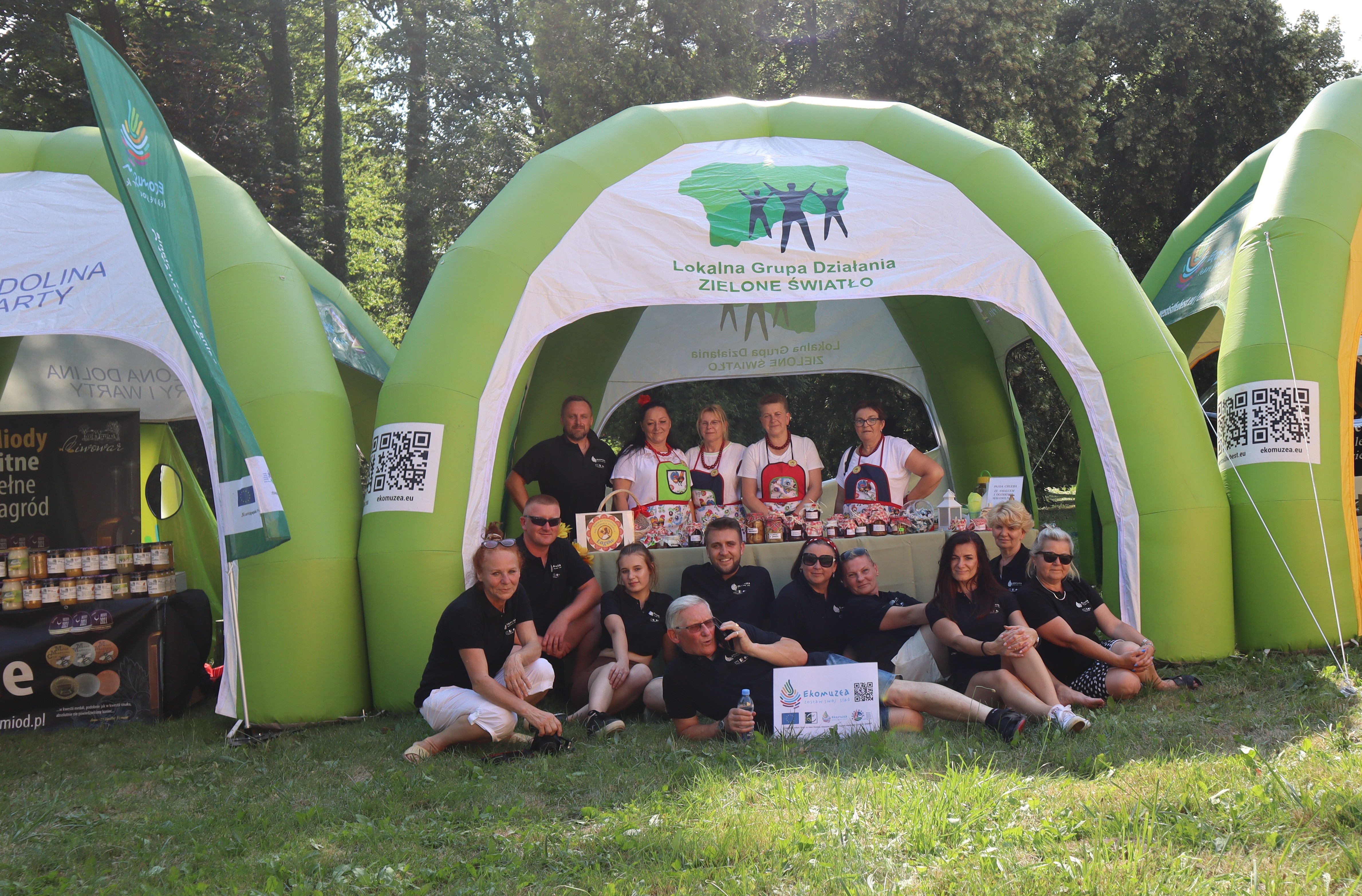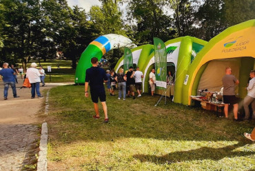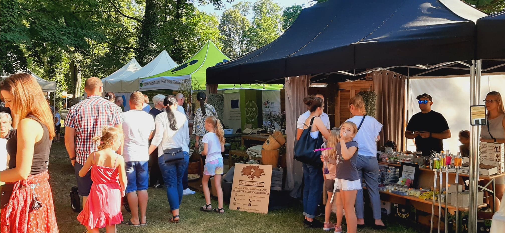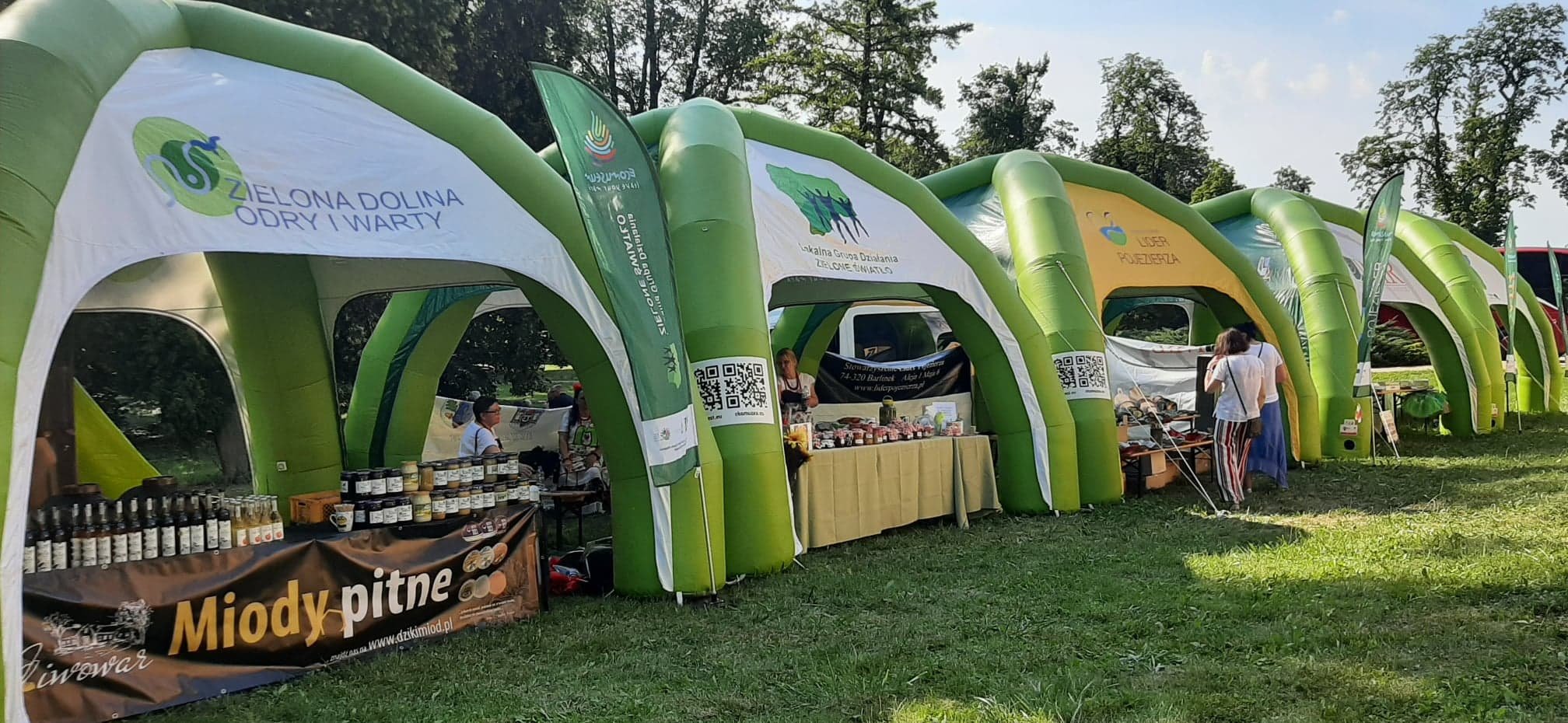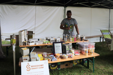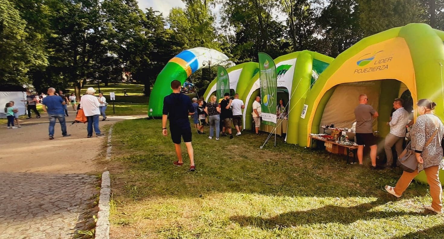 W cieniu namiotów można było nabyć lokalne specjały spożywcze ze wspomnianych obszarów jak np. miody i przetwory owocowe, a także piękne rękodzieło: ceramika, czy sztuka w postaci obrazów. Z każdego stoiska dobiegały rozmowy prowadzone z przedstawicielami organizacji pozarządowych współpracujących z wystawiającymi się LGD jak np. Stowarzyszenie Miłośników Kolei Wąskotorowej „Semafor”, czy też Koła Gospodyń Wiejskich.