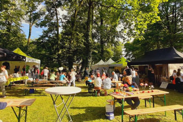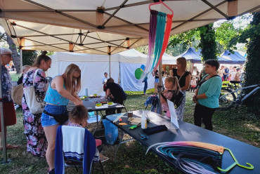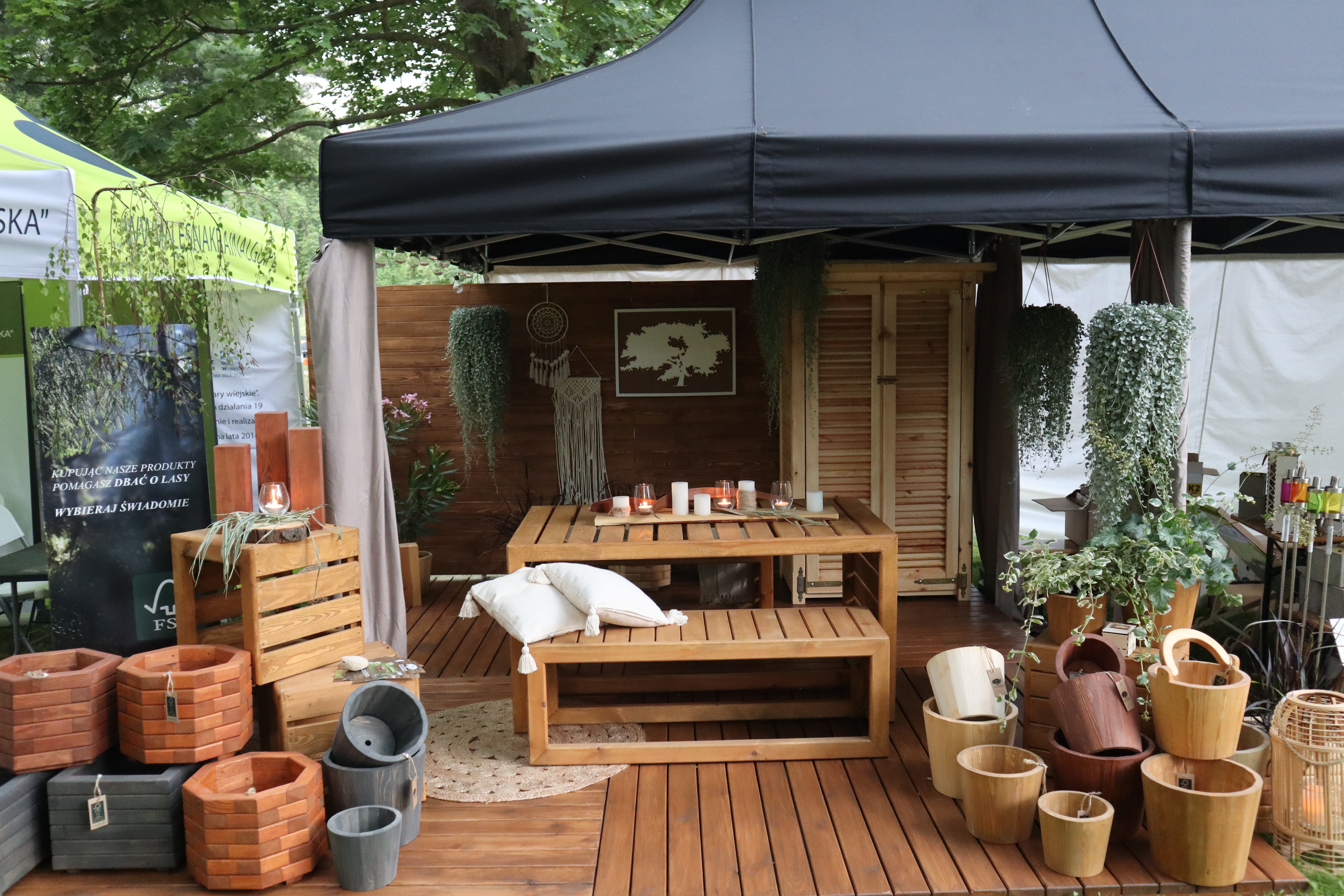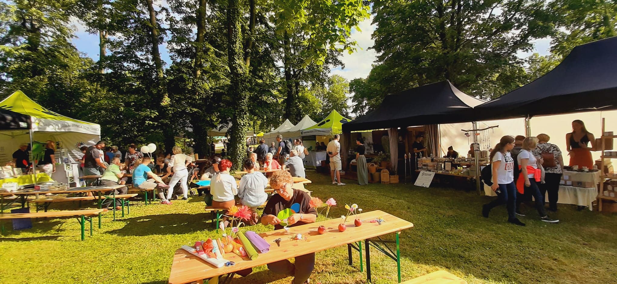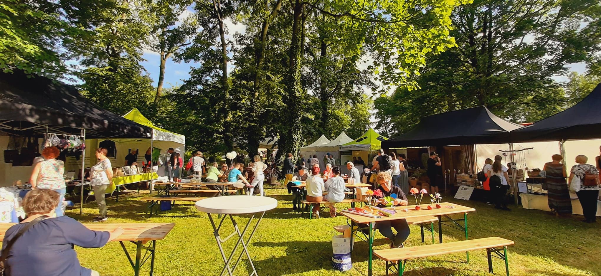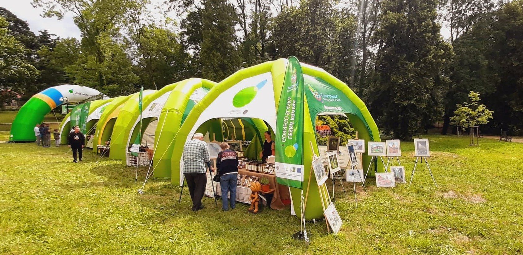 W cieniu namiotów można było nabyć lokalne specjały spożywcze ze wspomnianych obszarów jak np. miody i przetwory owocowe, a także piękne rękodzieło: ceramika, czy sztuka w postaci obrazów. Z każdego stoiska dobiegały rozmowy prowadzone z przedstawicielami organizacji pozarządowych współpracujących z wystawiającymi się LGD jak np. Stowarzyszenie Miłośników Kolei Wąskotorowej „Semafor”, czy też Koła Gospodyń Wiejskich.