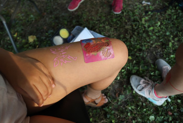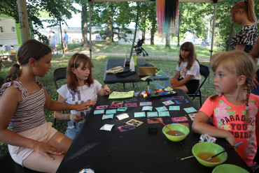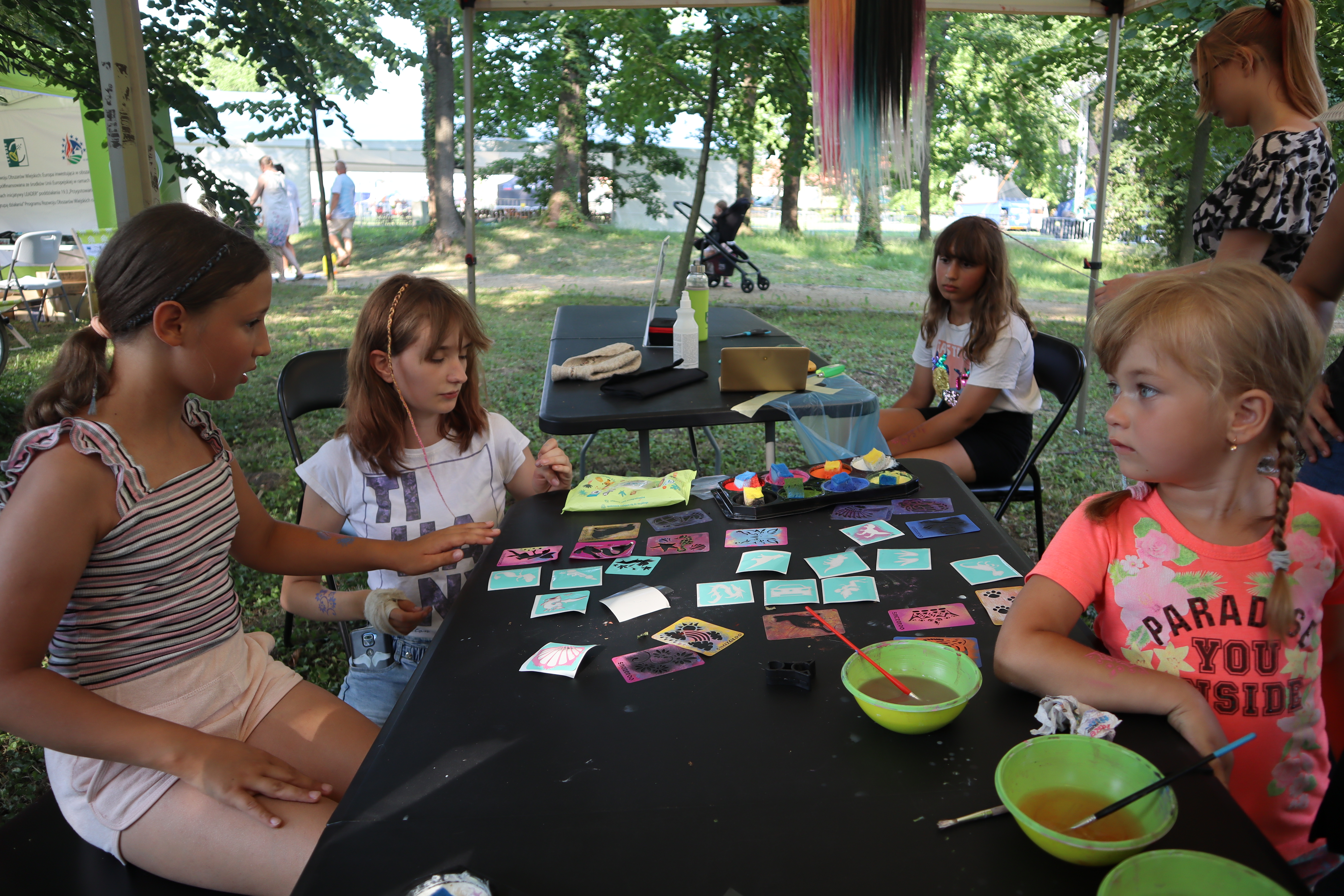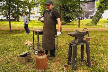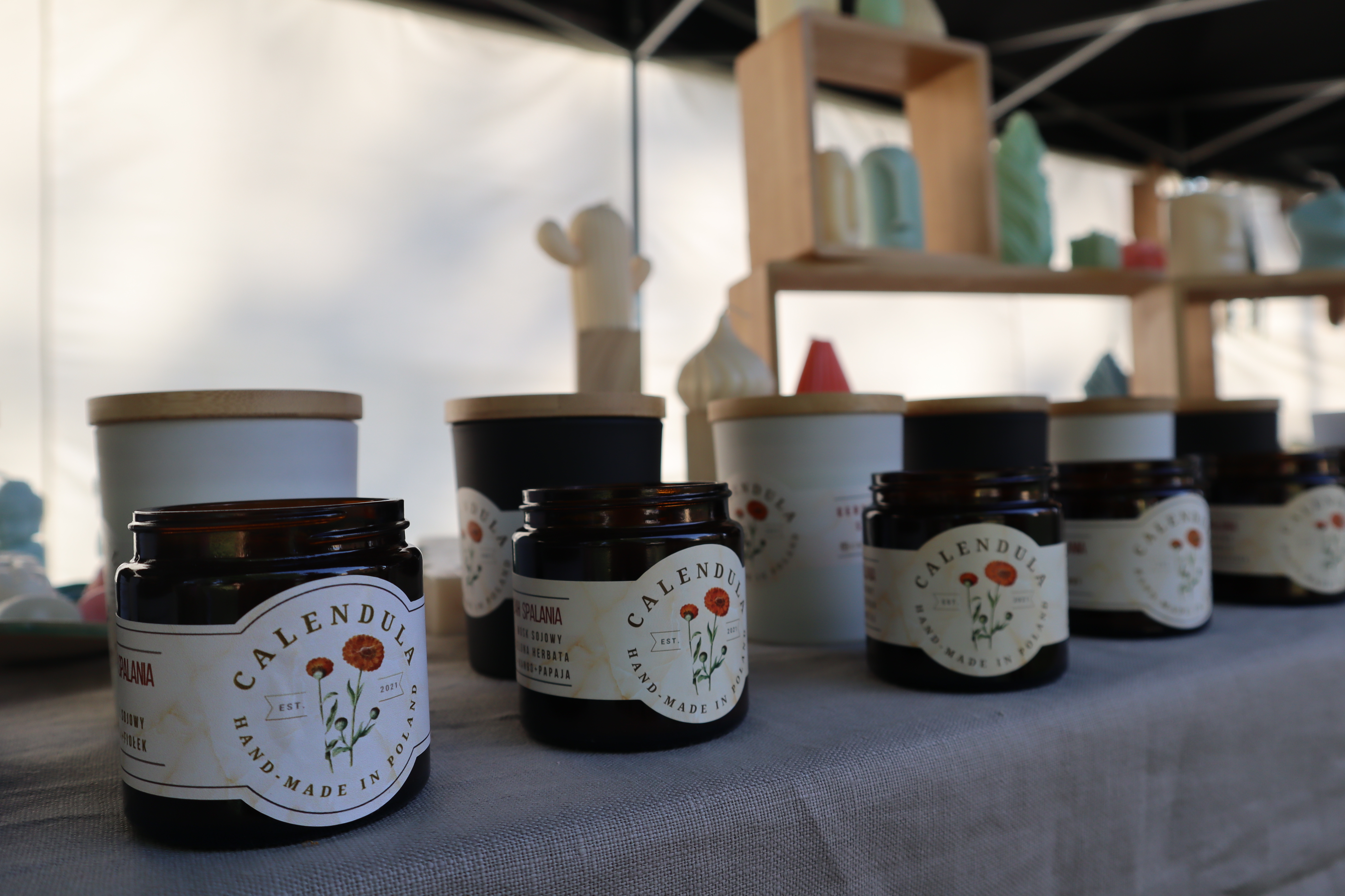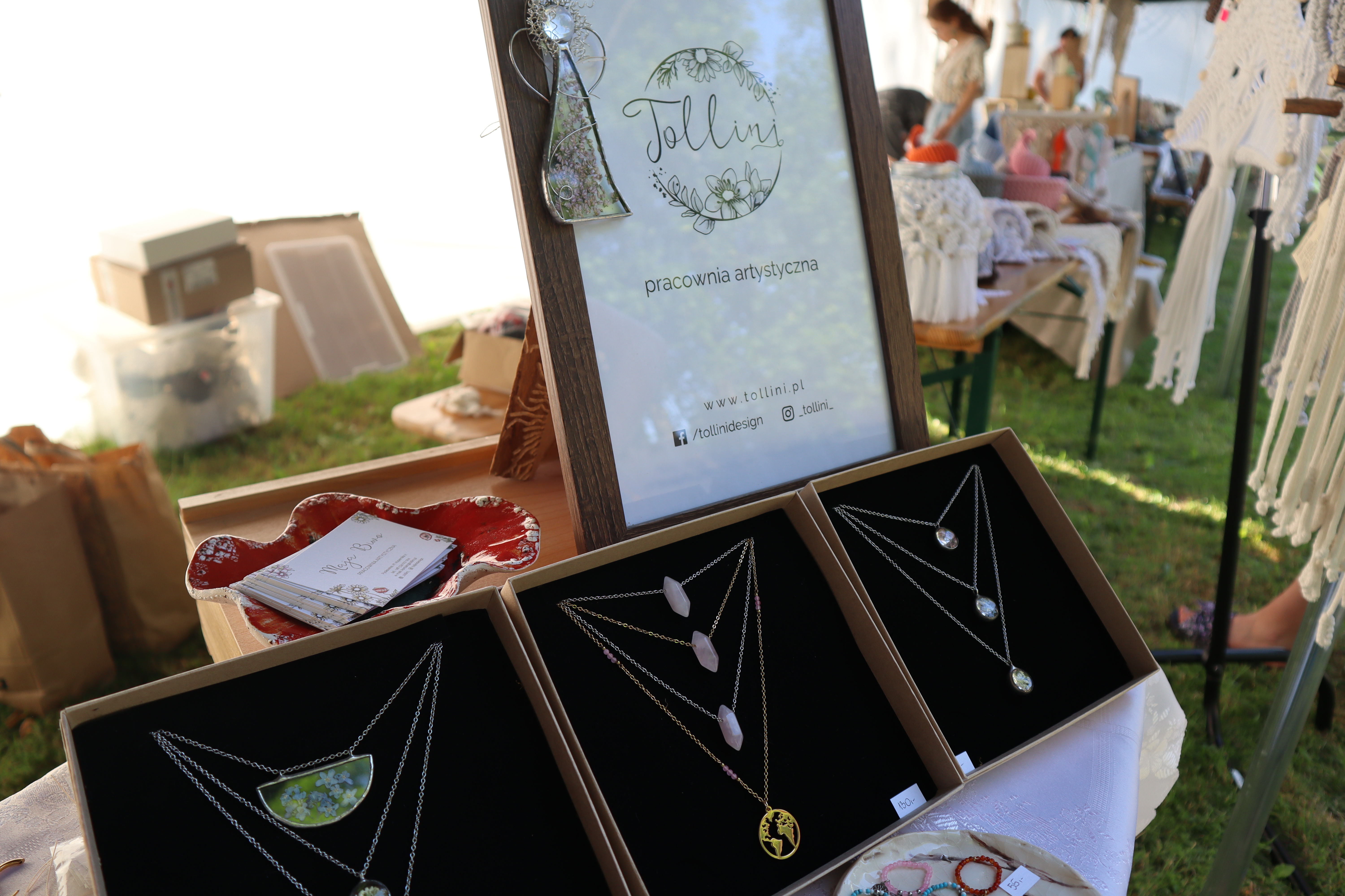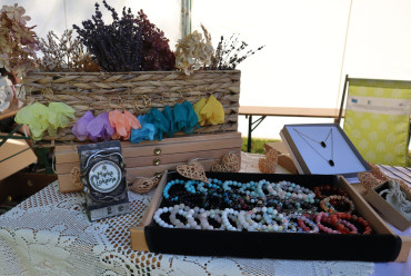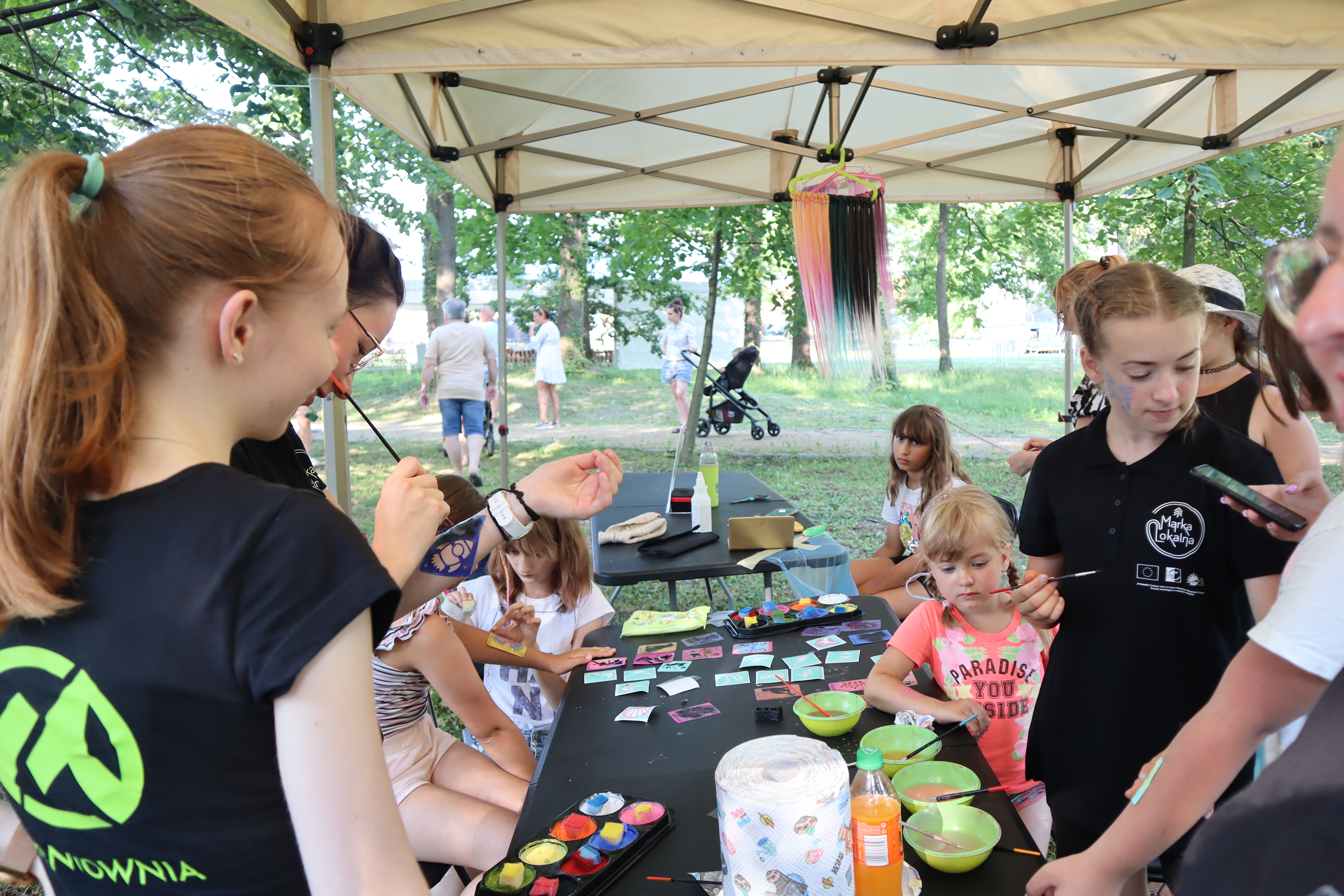 Nieopodal głównej sceny i zaplecza gastronomicznego powstało niemal miasteczko twórców nagrodzonych tytułem „Marka Lokalna”. Dwa rzędy namiotów wystawowych z naszego terenu, a także z obszaru działania Stowarzyszenia LGD „Brynica to nie granica” oraz LGD Nadarzyn-Raszyn-Michałowice. Rzemieślnicy i artyści mieli niebywałą okazję zaprezentowania i sprzedaży swoich wyrobów: biżuterii, obrazów, galanterii skórzanej i tekstylnej, produktów z drewna i szkła. Pomiędzy rzędami wystawców znalazło się miejsce dla naszego beneficjenta, firmy Off-Road. Dzięki niemu każdy mógł zasiąść za kierownicą quada, nawet Ci najmniejsi. Jednak frajdę miały nie tylko dzieci, ale również dorośli. W miasteczku Marki Lokalnej swoje pokazy prowadził między innymi kowal Pan Piotr Farbowski, a warsztaty dla dzieci prowadzone były przez cały czas trwania jarmarku. Można było spróbować swoich sił w pracach plastycznych z różnymi materiałami jak papier, krepa a nawet szkło. Te ostatnie prowadzone były przez Panią Sylwię Pietrek z firmy Witrażowy upominek.