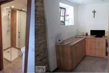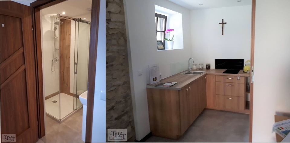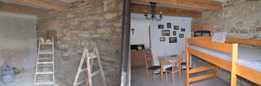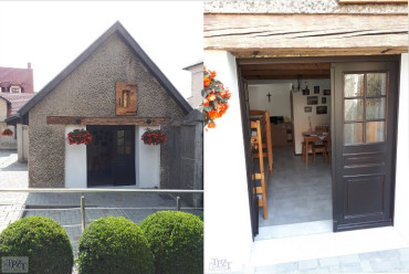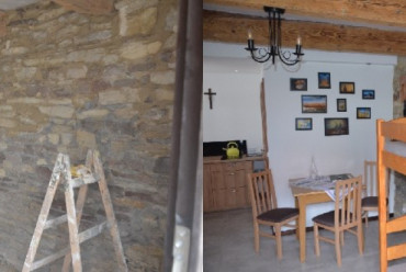 Najlepszym miejscem na utworzenie schroniska dla pielgrzymów było pomieszczenie gospodarcze znajdujące się przy parafii. Obiekt jednak wymagał remontu a także trzeba było go przystosować do potrzeb mających tam odpoczywać pielgrzymów. W budynku wymieniono istniejące okna na nowe, drewniane. Drzwi wejściowe dwuskrzydłowe zostały wymienione na jednoskrzydłowe z doświetlem bocznym. Wykonano ocieplenie podłogi, stropu a także zainstalowano centralne ogrzewanie podłogowe. W obiekcie zagospodarowano miejsce na aneks kuchenny oraz komfortową łazienkę, w obu tych pomieszczeniach zamontowano wentylację.