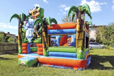 Ostatnią propozycją, która znajdziemy w ofercie firmy „Party4You” jest dmuchany plac zabaw, czyli atrakcja, o której marzą wszyscy mali solenizanci. Motywem przewodnim dmuchańca jest kolorowa dżungla. Dzieci mają możliwość korzystania z zjeżdżalni, tunelu oraz dmuchanych słupków do omijania. Dmuchany plac zabaw doskonale sprawdzi się podczas imprez w plenerze, ale także w przestrzeniach zamkniętych (np. hala podczas imprezy firmowej).