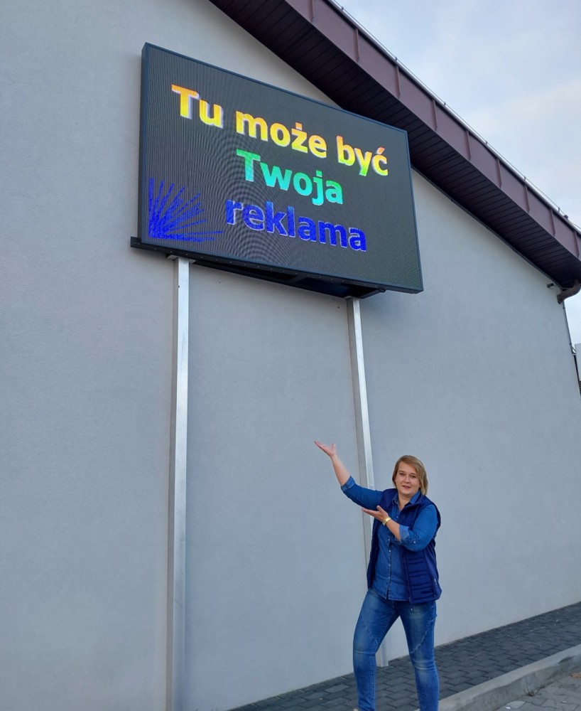 Drugim równie ważnym dla mnie zakupem i też kosztownym był zakup telebimu -ekranu ledowego. Telebim to nowoczesna reklama, gdzie ruch i zmieniający się obraz przyciąga zainteresowanie przechodniów. Reklama na telebimie jest dla każdego, kto chciałby zareklamować swoje usługi czy firmę. Miejsce telebimu znajduje się w centrum handlowym w Kaletach przy parkingu Pepco i Biedronka. Reklamy na telebimie można szybko edytować i zmieniać treści, dzięki temu nie ma konieczności dodatkowego druku w przypadku reklamy drukowanej, a tym samym dba się o środowisko naturalne. Koszt takiej reklamy to tylko 5 groszy za wyświetlenie, a przy dłuższej umowie nawet o 50% taniej.