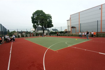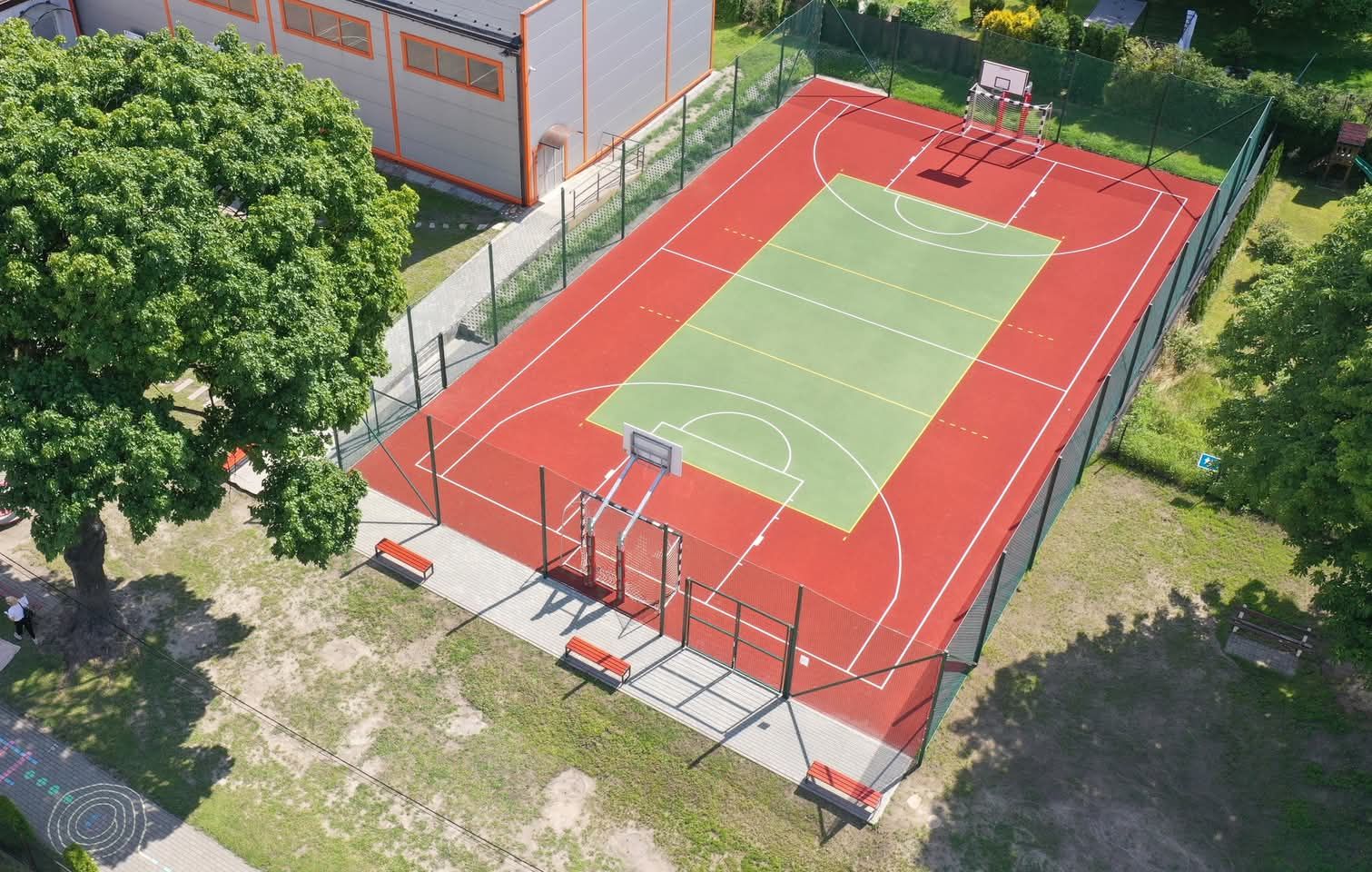 W 2022 r. Gmina pozyskała dofinansowanie w wysokości 185 882,00 zł (całościowy koszt inwestycji wyniósł 378 900,29 zł) ze środków Programu Rozwoju Obszarów Wiejskich. W wyniku realizacji projektu na szkolnym podwórku powstało boisko wielofunkcyjne o nawierzchni poliuretanowej przeznaczone do gry w siatkówkę, koszykówkę oraz piłkę ręczną. Obiekt o powierzchni 558 m² i rozmiarach 18 m x 31 m jest otoczony czterometrowym piłkochwytem. Ponadto projekt przewidywał budowę chodnika łączącego boisko z salą gimnastyczną. Na obiekcie wytyczono linie, wyposażono go w niezbędny sprzęt do gry w koszykówkę, siatkówkę oraz piłkę ręczną. W ramach inwestycji zakupiono także kompostowniki.