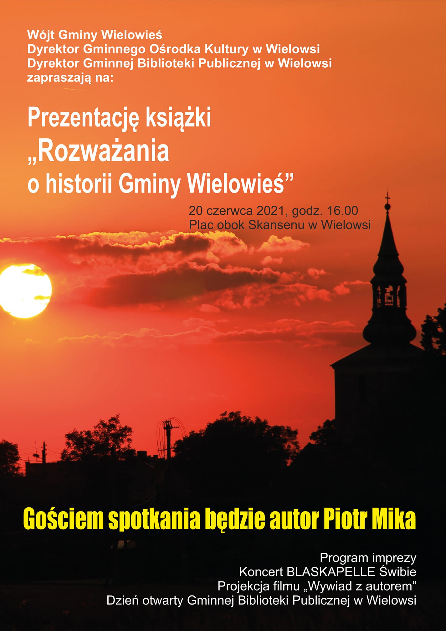 20 czerwca 2021 r. zorganizowano podsumowanie projektu, którym była prezentacja książki "Rozważania o historii gminy Wielowieś". Wydarzenie przybrało kształt lokalnego święta. Zagrała miejscowa orkiestra, zaśpiewał chór, były atrakcje dla dzieci, poczęstunek i był oczywiście Piotr Mika – niekwestionowana gwiazda popołudnia. – Widać było, że ludzie potrzebują przestrzeni, by wypowiedzieć się na temat historii, że jest to dla nich ważne. Dodatkowo nasze podsumowanie organizowaliśmy w momencie luzowania pandemicznych obostrzeń. Wszyscy cieszyliśmy się, że spotkanie na żywo jest możliwe. I faktycznie frekwencja pozytywnie nas zaskoczyła – komentuje Pani Kornelia.
