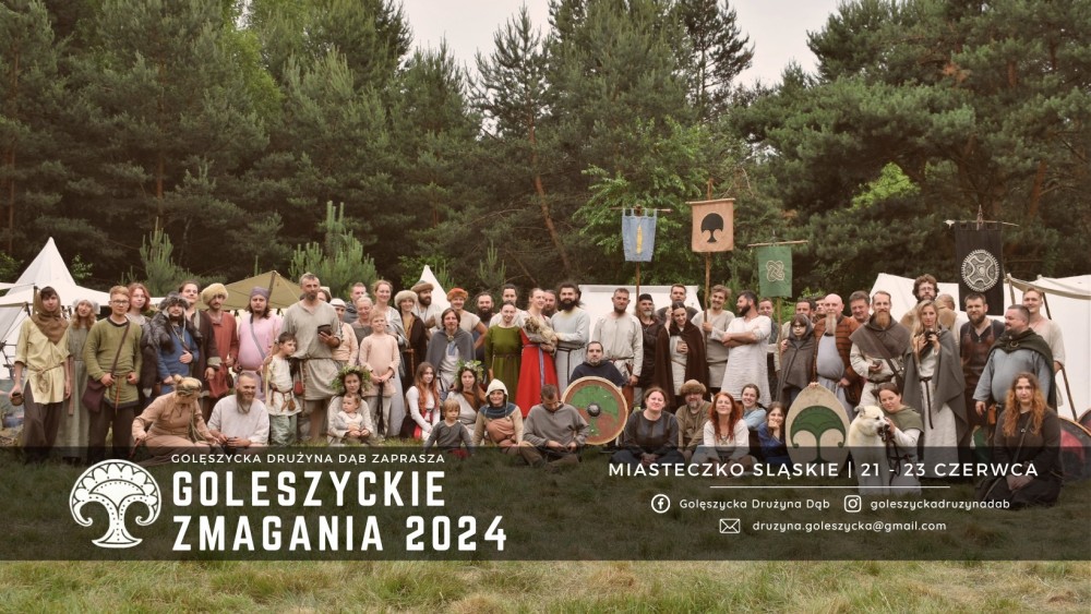 Serdecznie zapraszamy w dniach 22-23 czerwca do Miasteczka Śląskiego na IV Golęszyckie Zmagania. Już po raz czwarty spotykamy się, aby przez weekend wspólnie przenieść się w czasie o 1000 lat i zasmakować życia naszych przodków. Na weekend na łonie natury, w cudownym, słowiańskim klimacie serdecznie zaprasza Golęszycka Drużyna Dąb. Zgłoszenia: https://docs.google.com/forms/d/e/1FAIpQLScDl1OZQAUa-22FEliMqGRI9ut2sCQnetTJamtTdp_HtMdm4g/viewform?fbclid=IwAR3kPd64YGnIG_i1RPFT_Kxhb8dy_XJnq-9-HsNkJU1Un9Zn4lh_KgEHRQg